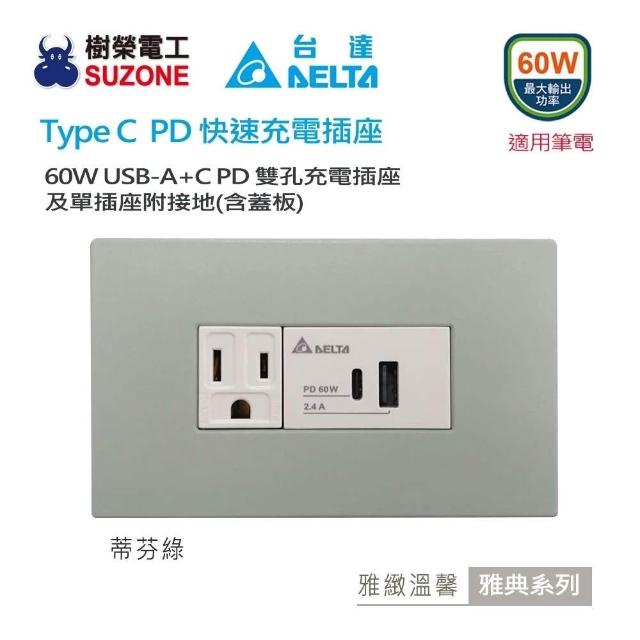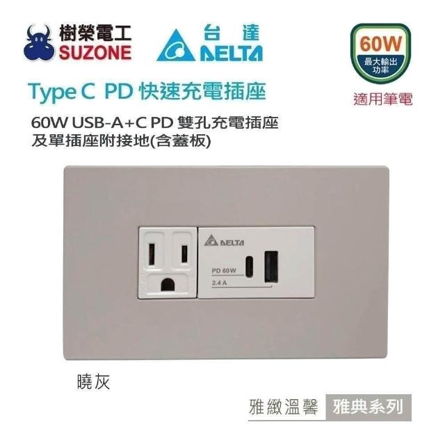 台達電子雅典系列 60W USB雙孔充電插座 A+C PD插座 Type C插座