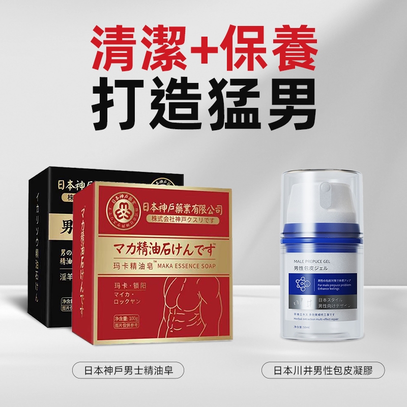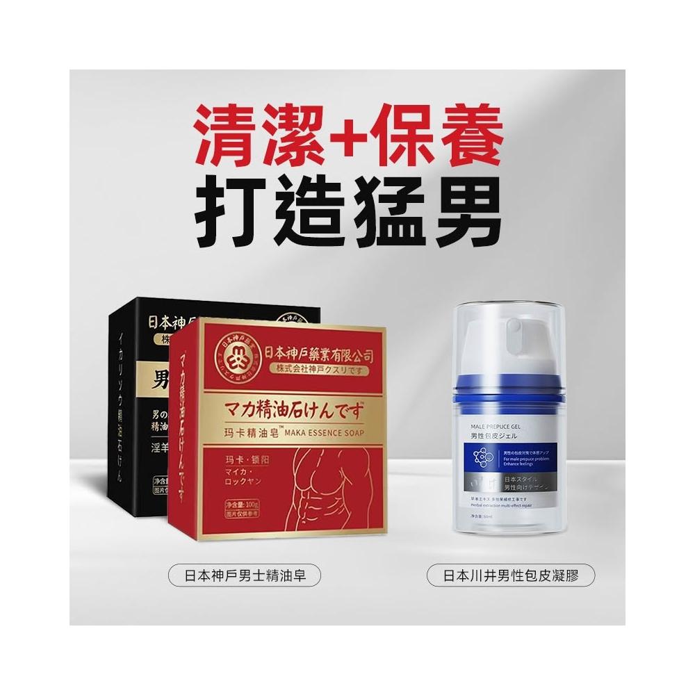BLG 台灣出貨 日本神戶男士精油皂+川井男性保養膏套裝 包皮凝膠 男士護理沐浴2件套 成人清潔用品(MX08473)