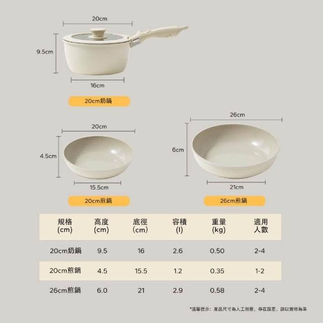 RedchefRedchef紅廚 陶瓷岩不沾鍋具5件組 可拆式手柄+20/26CM平底鍋+18/20CM奶鍋 IH電磁爐適用