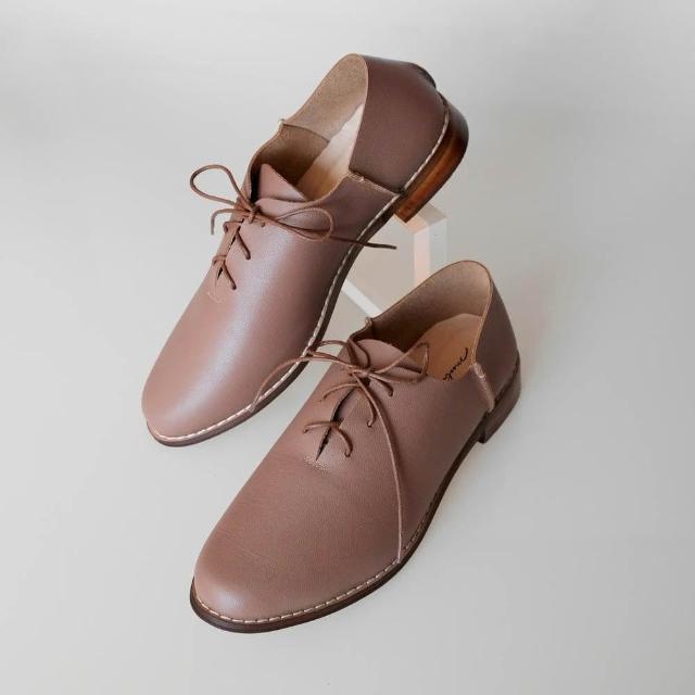 木子手工鞋│英倫牛津風牛皮加厚氣墊寬楦平底鞋/黑、白、棕三色