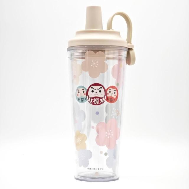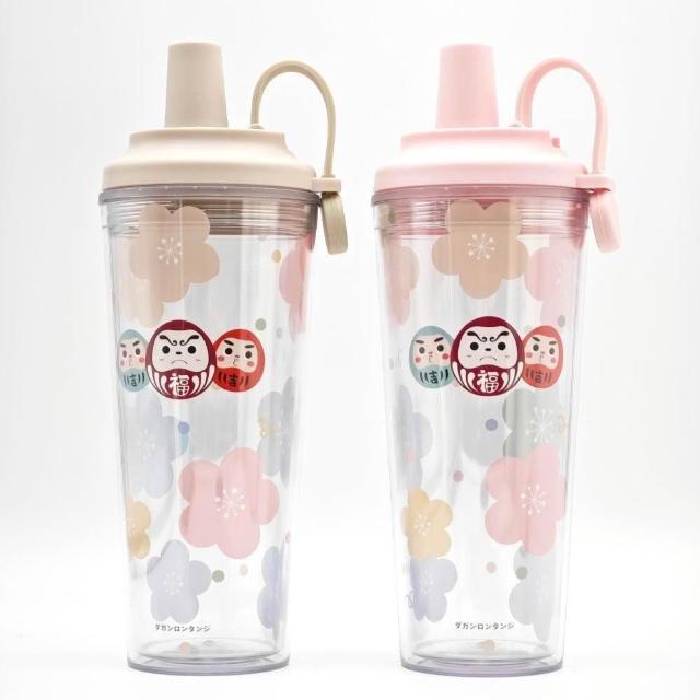longtanji隆探吉 磁吸雙層透明吸管杯 710ml (交換禮物 聖誕禮物 隨身杯 隨行杯 環保杯 達摩不倒翁 福神)