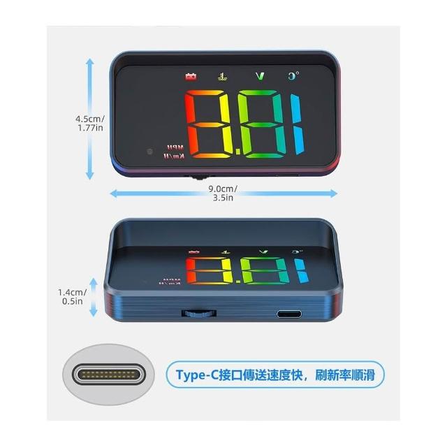 新款彩色OBD抬頭顯示器 HUD type-C抬頭顯示器 水溫 電壓