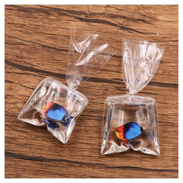 魚包裝吊飾 水族吊飾 海水缸吊飾 海水魚裝飾品 鑰匙圈 DIY透明樹脂金魚飾品 小丑魚口袋吊墜 項
