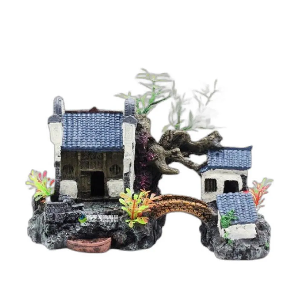 江南小屋 水族造景 魚缸擺飾 魚蝦躲避屋 造景裝飾 仿真雲鶴樓 魚缸造景裝飾品 假山套餐擺件