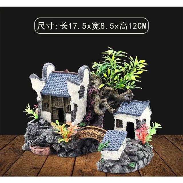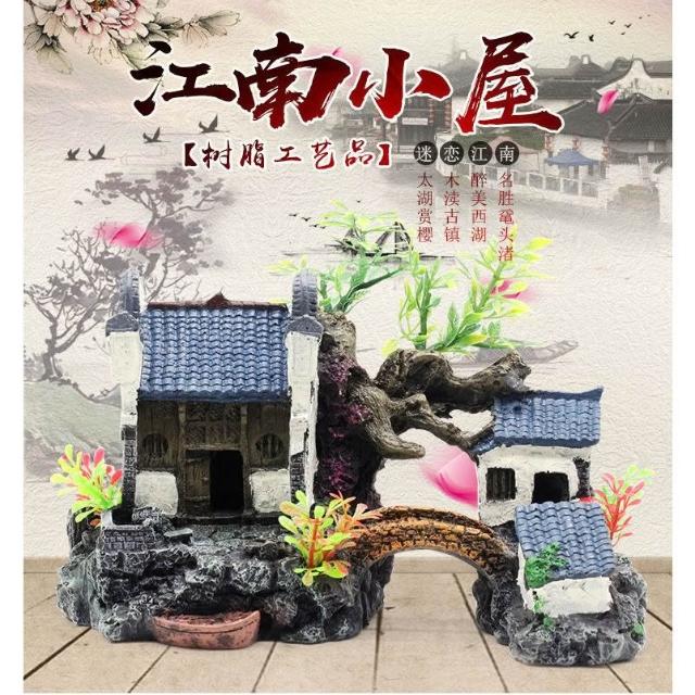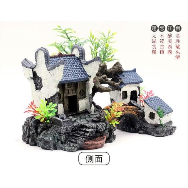 江南小屋 水族造景 魚缸擺飾 魚蝦躲避屋 造景裝飾 仿真雲鶴樓 魚缸造景裝飾品 假山套餐擺件