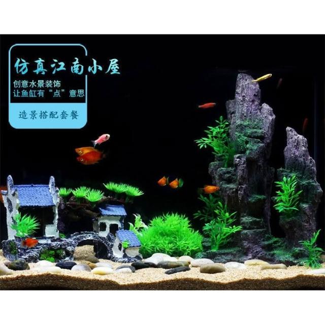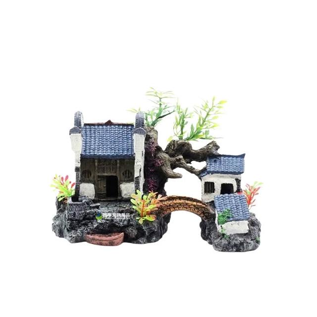 江南小屋 水族造景 魚缸擺飾 魚蝦躲避屋 造景裝飾 仿真雲鶴樓 魚缸造景裝飾品 假山套餐擺件