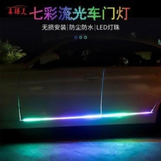 防水七彩車門燈流光燈 LED汽車底盤側門改裝流水跑馬燈 氛圍裝飾燈 滑門燈