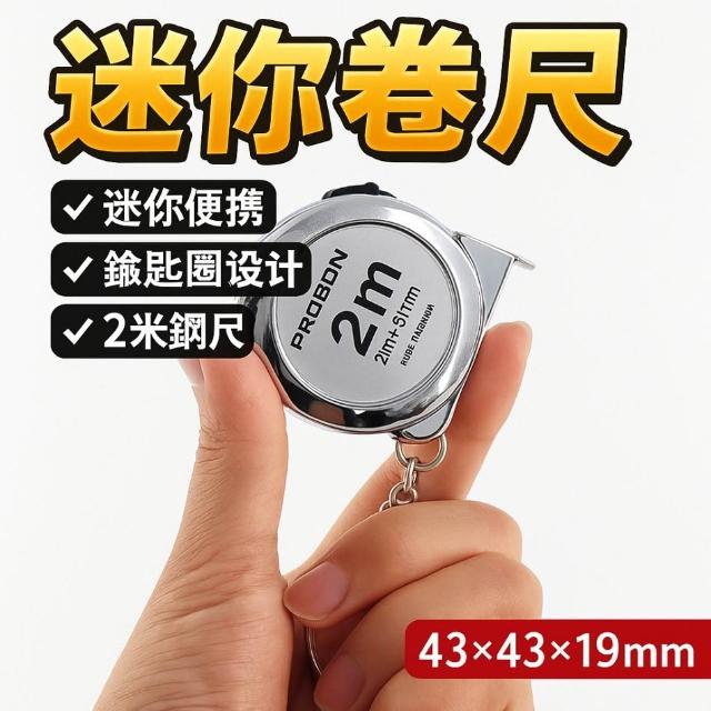 迷你卷尺 2米|鑰匙圈鋼捲尺|便攜式小巧測量工具|銀色蝸牛尺