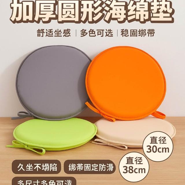 圓形加厚海綿椅墊|30cm/38cm 綁帶坐墊|餐椅墊 圓凳墊 多色可選