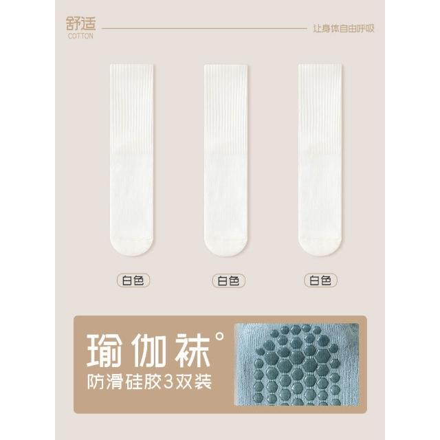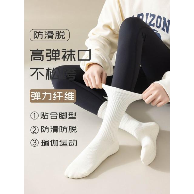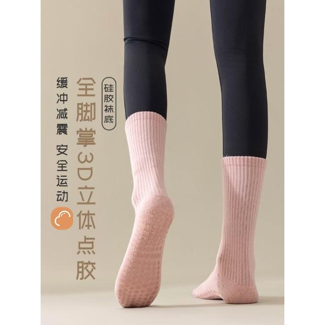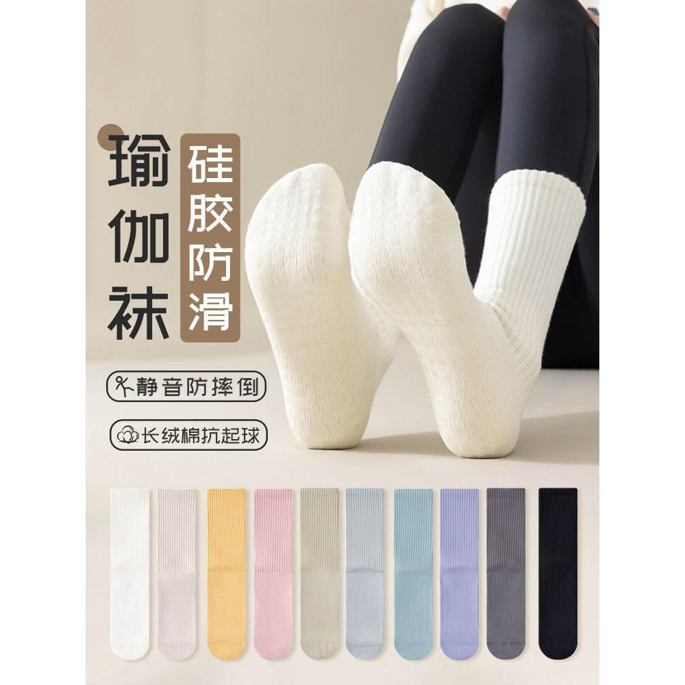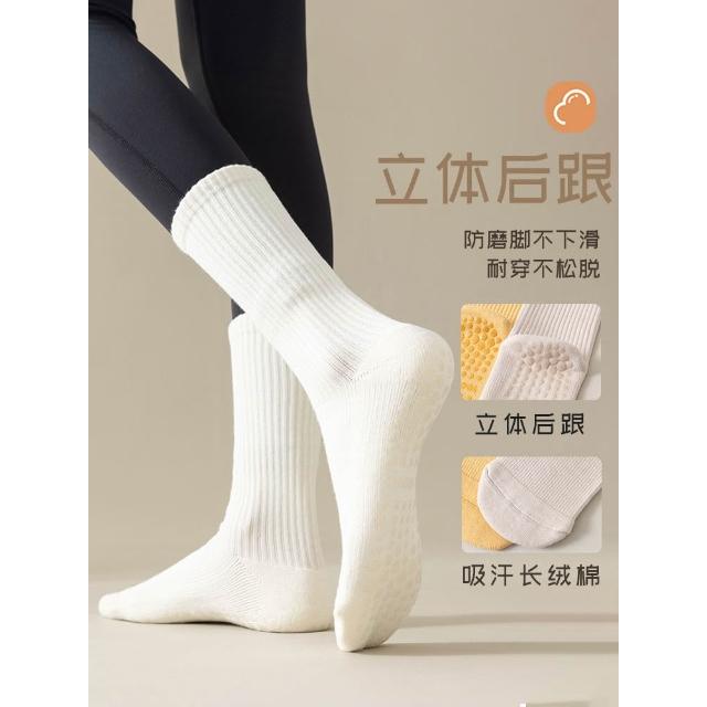瑜伽襪子防滑專業女普拉提健身舞蹈運動長棉襪白色中筒襪女士春秋