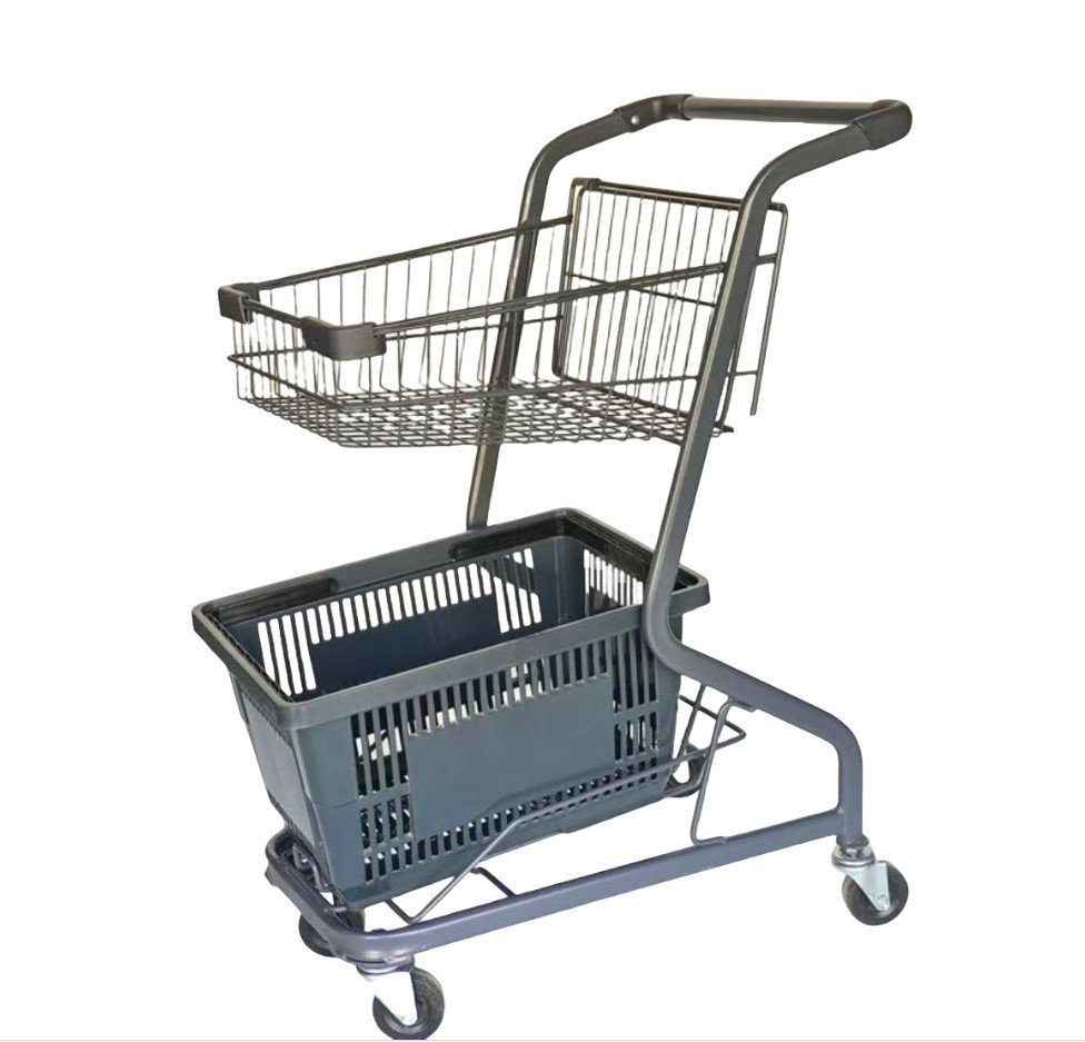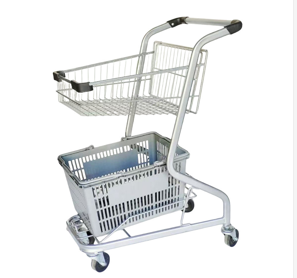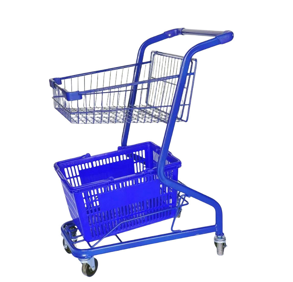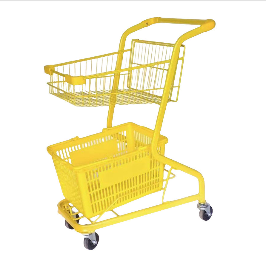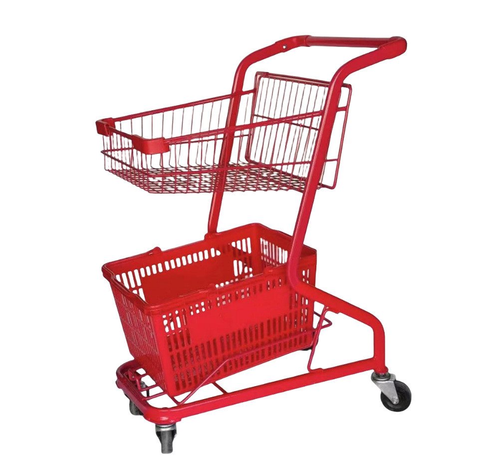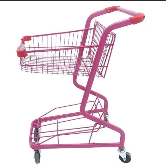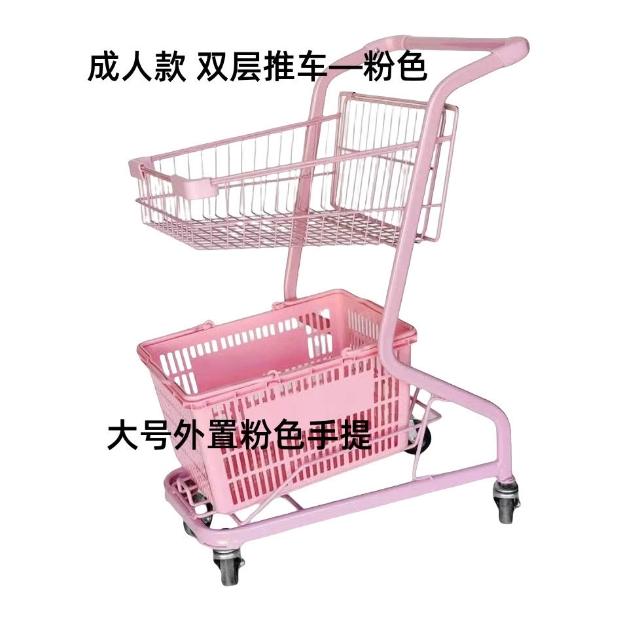 超市購物車雙層提籃車商場推車酒吧KTV推車商場娃娃機粉紅手推車