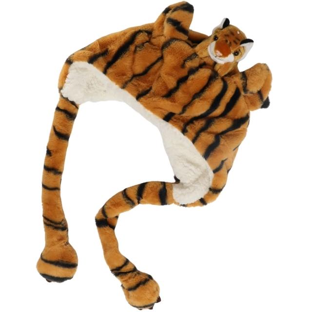 六福村主題遊樂園黃老虎翹尾巴造型毛帽 動物派對變裝 禦寒保暖毛絨帽
