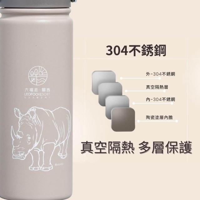 六福村主題遊樂園犀牛保溫杯304陶瓷塗層550ml 磨砂霧面環保杯 手提保溫杯