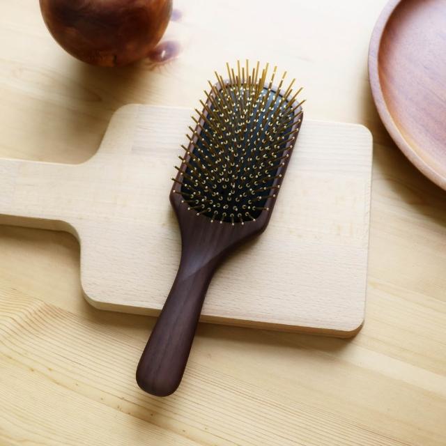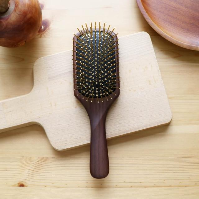 樹比木梳 遠紅外線台灣專利典藏胡桃木黃金梳(銅針鍍24k金 黃金梳 專利木柄特別版)