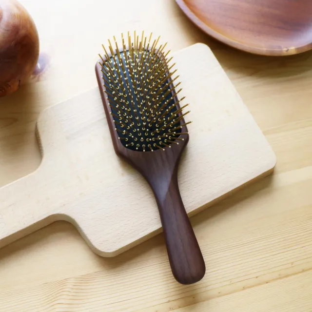 樹比木梳 遠紅外線台灣專利典藏胡桃木黃金梳(銅針鍍24k金 黃金梳 專利木柄特別版)