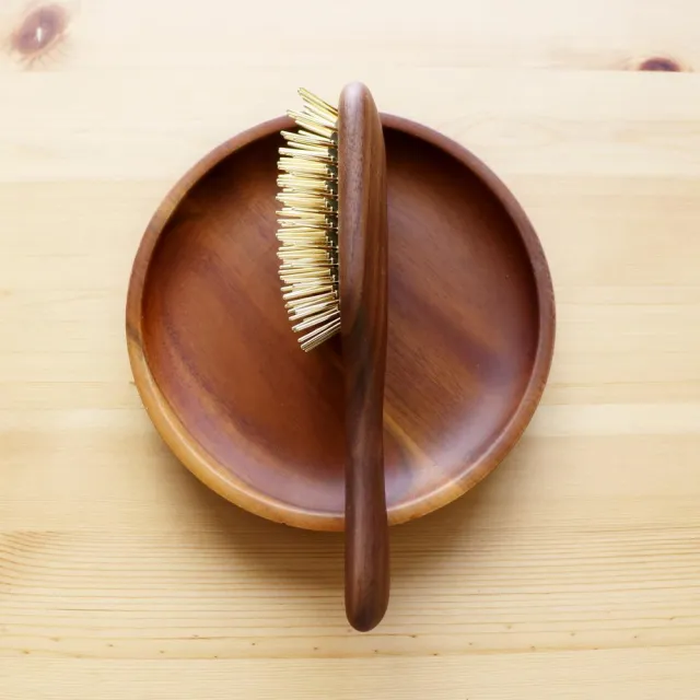 樹比木梳 遠紅外線台灣專利典藏胡桃木小四角黃金梳(銅針鍍24k金/梳針密度高/ 獨家氣墊 黃金梳)