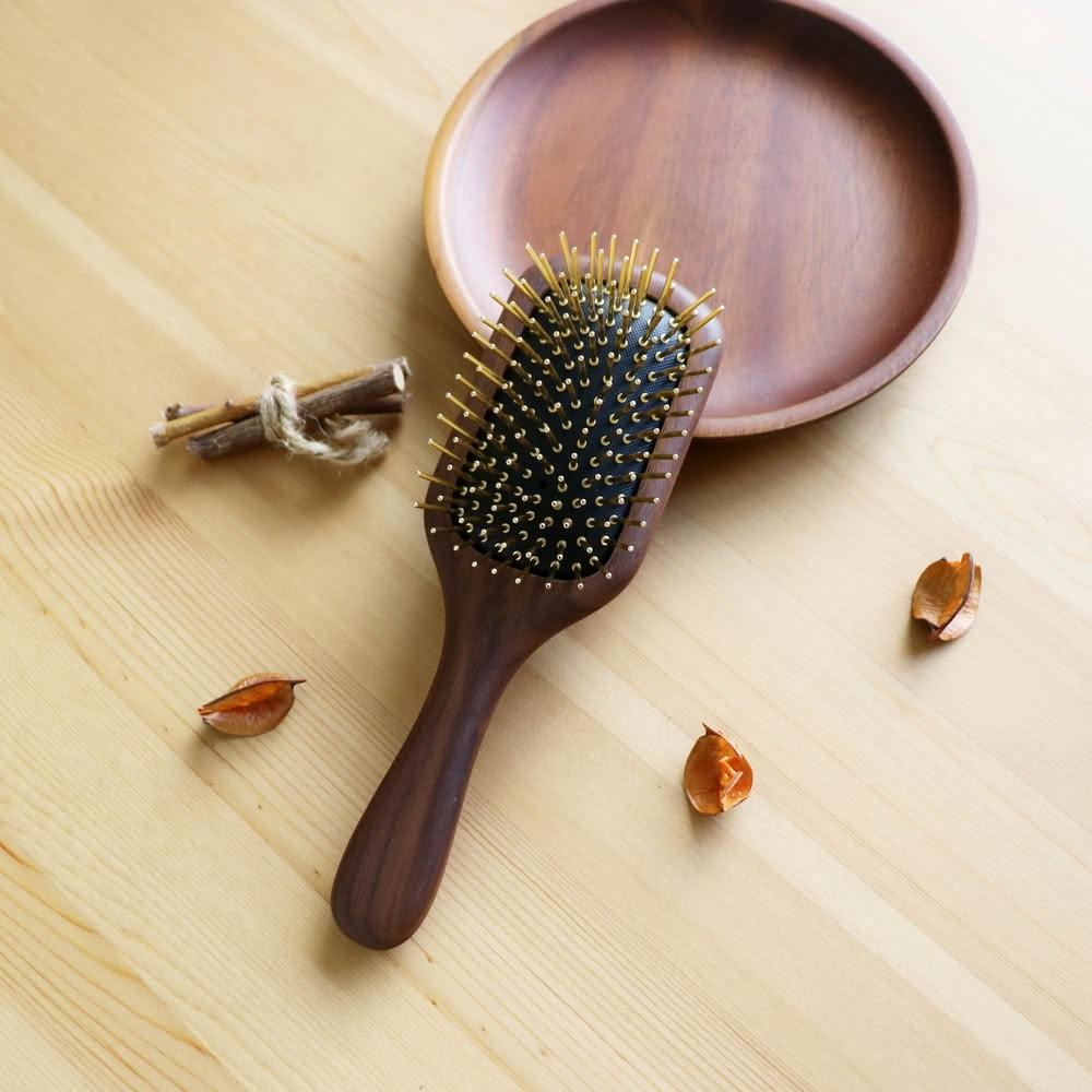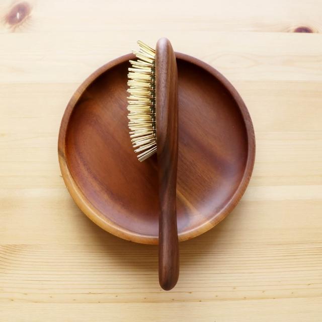 樹比木梳 遠紅外線台灣專利典藏胡桃木小四角黃金梳(銅針鍍24k金/梳針密度高/ 獨家氣墊 黃金梳)