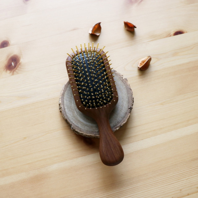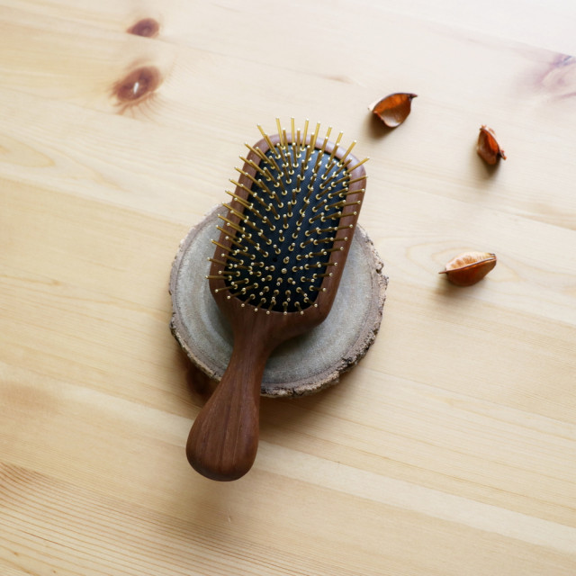 樹比木梳 遠紅外線奢華柚木小小四角黃金梳(銅針鍍24K金 圓柄特別版 黃金梳)