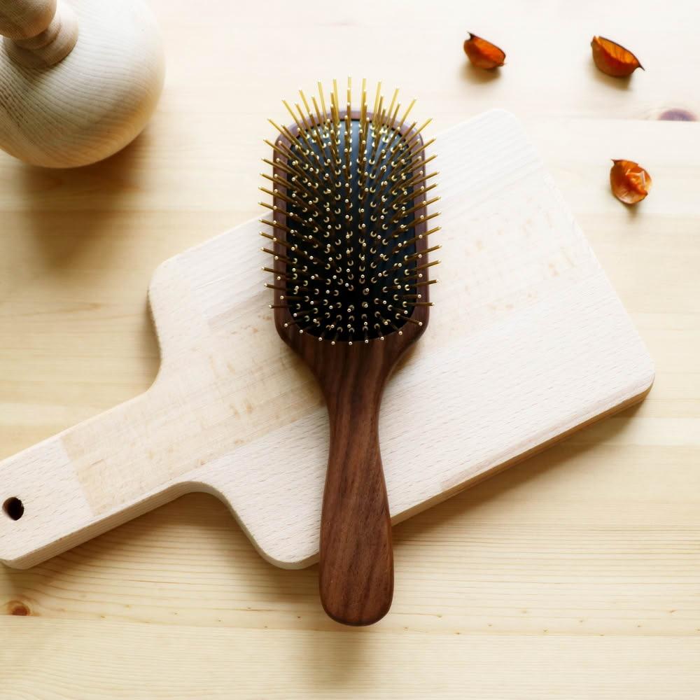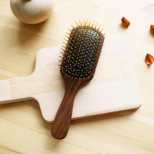 樹比木梳 遠紅外線典藏胡桃木161針黃金梳(銅針鍍24K金 黃金梳)