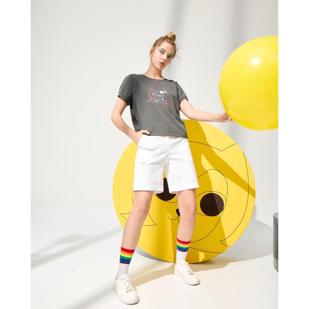 Deep Red深紅 mimix m78605 女性logo印花短袖上衣