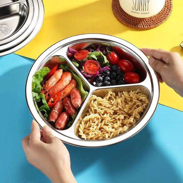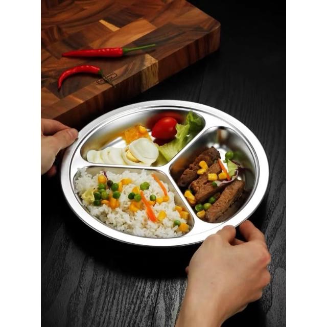 《茉莉餐具》 圓三格盤 304不銹鋼 圓三格 餐盤 不銹鋼盤 分食盤 露營 野餐 備料 備菜