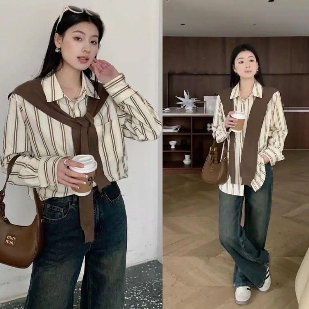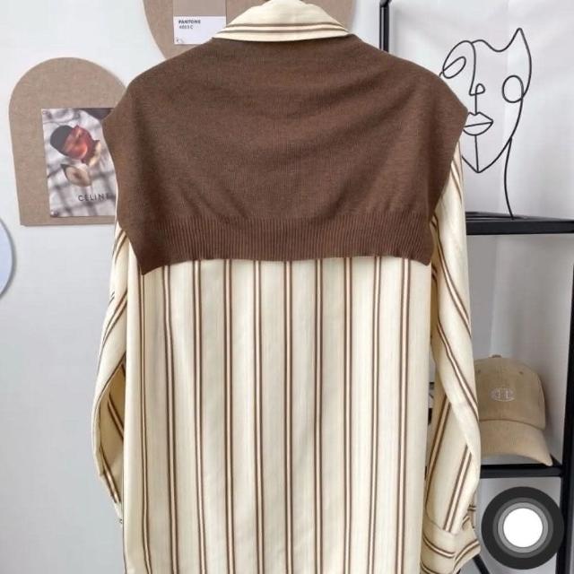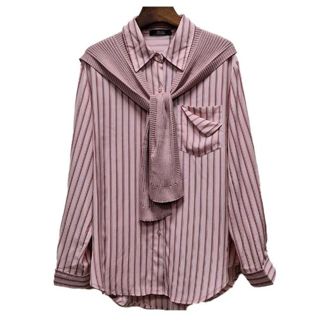 INAN穎安 真兩件式披肩條紋襯衫復古、古著、寬鬆襯衫、穿搭