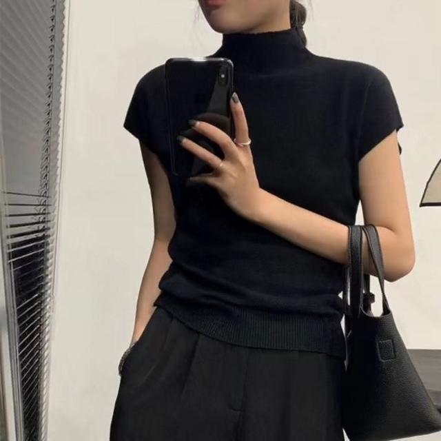 INAN穎安 簡約高領合身針織短袖上衣 針織衫