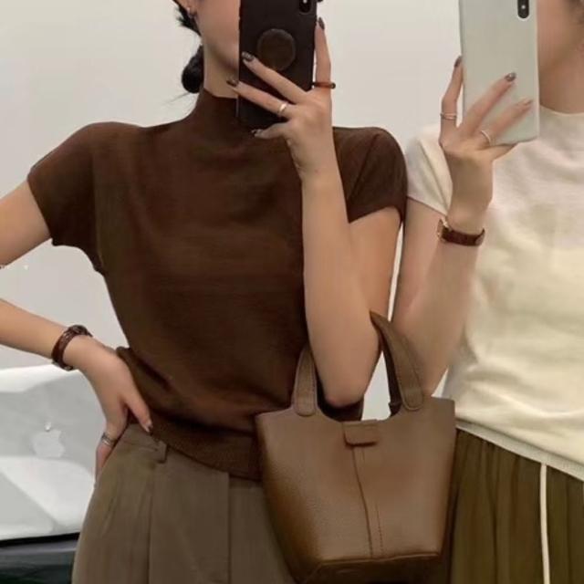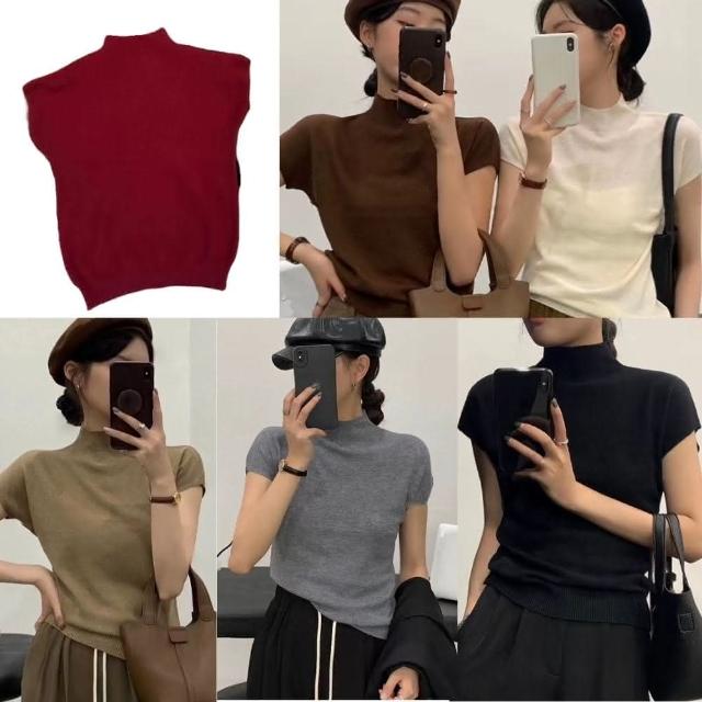 INAN穎安 簡約高領合身針織短袖上衣 針織衫