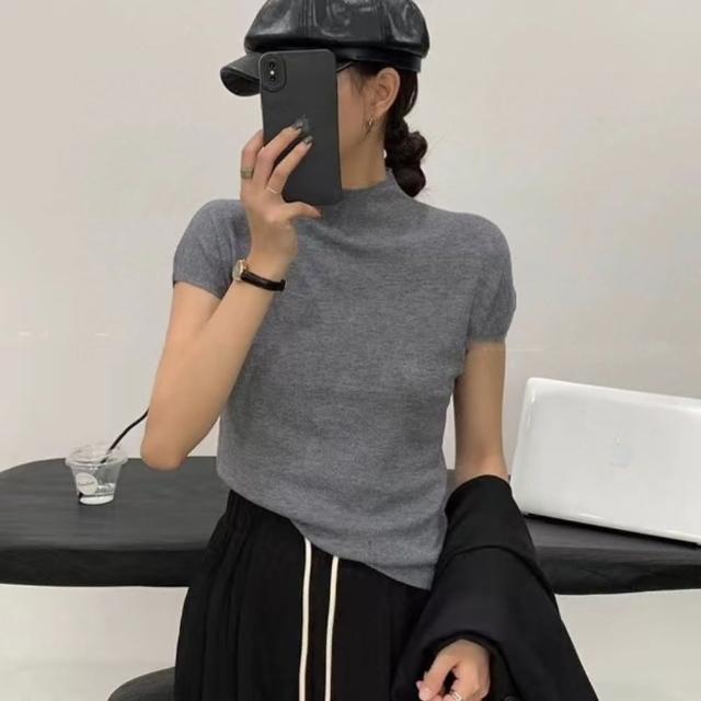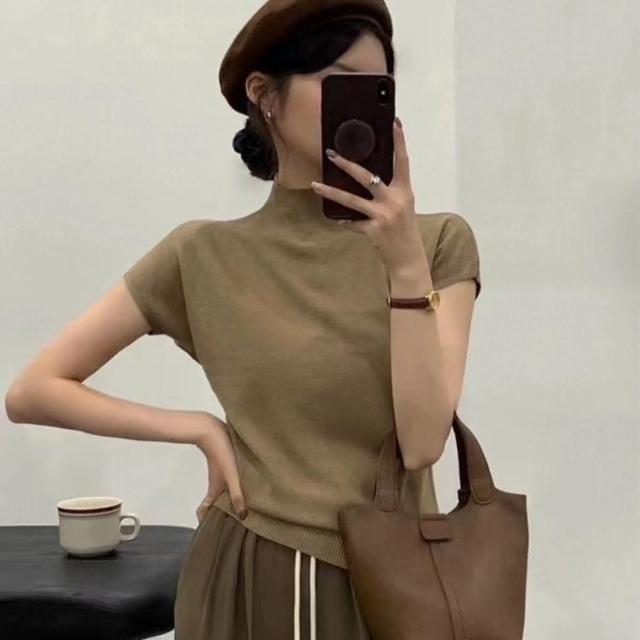 INAN穎安 簡約高領合身針織短袖上衣 針織衫