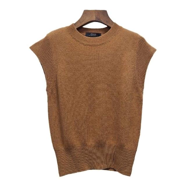 INAN穎安 小蓋袖墊肩素色純羊毛針織短袖上衣 針織衫