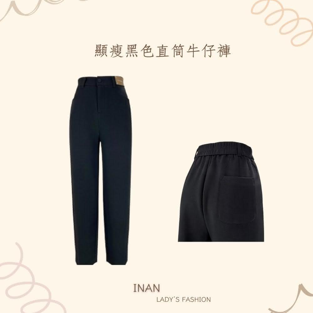 INAN穎安 顯瘦黑色直筒牛仔褲