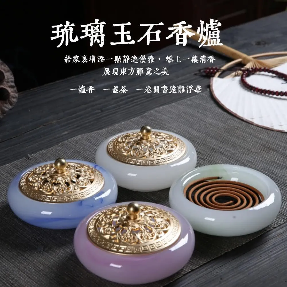 琉璃玉石香爐(香道 香爐 琉璃玉石環香爐 家用室內沉香爐 檀香爐 香薰爐 香篆爐 玉石香爐 盤香爐 淨香爐 薰香爐)