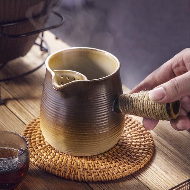 束口壺 柴燒可明火/可乾燒 約500ml |圍爐煮茶 烤奶茶壺(圍爐煮茶 烤奶茶壺 側把壺 煮茶壺 陶瓷茶壺 罐罐茶壺 日式 泡茶壺 碳烤耐高溫 可明火 茶壺 陶瓷壺 保溫壺)