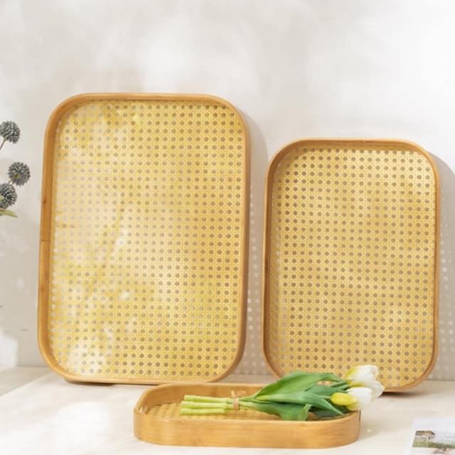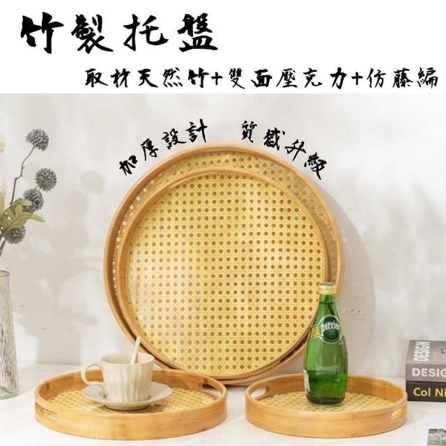 竹製藤編底托盤 |圓角手提木質托盤 竹製托盤 簡約托盤 木托盤(竹製托盤 木質托盤 日式托盤 木盤 餐盤 茶盤 竹製藤編底