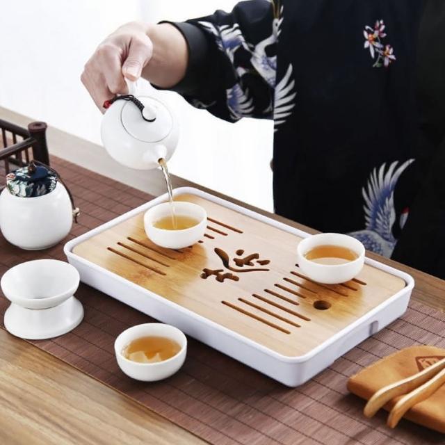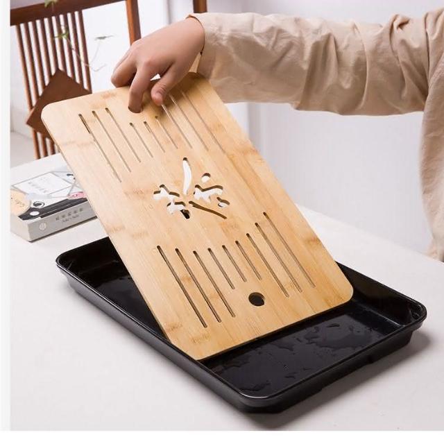日式竹茶盤 竹製茶盤 茶具(泡茶盤 竹茶盤 長方型竹茶盤 儲水功夫茶盤 茶壺 竹泡茶盤 泡茶用具 水茶臺托盤)