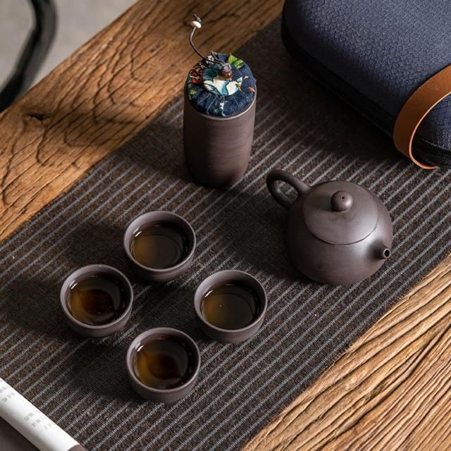 紫砂旅行茶具 一壺四杯+茶葉罐(外出泡茶組 泡茶壺 隨身車用旅行功夫茶具套裝 旅行茶具 快客杯 户外泡茶杯小套裝 快客壺 茶壺茶具)