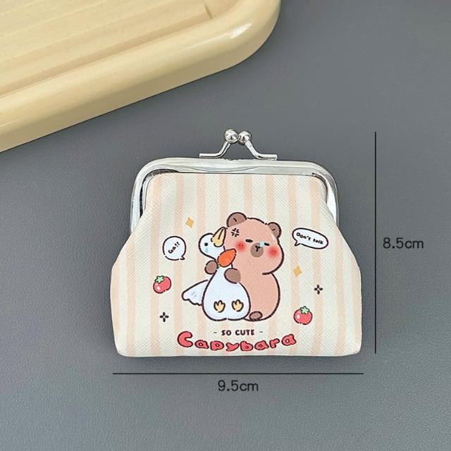 水豚零錢包 卡皮巴拉(零錢包 水豚 PU防水 零錢袋 卡通 迷你 耳機包 收納包 便攜鑰匙包 小零錢包 隨身小物收納包 塔扣)
