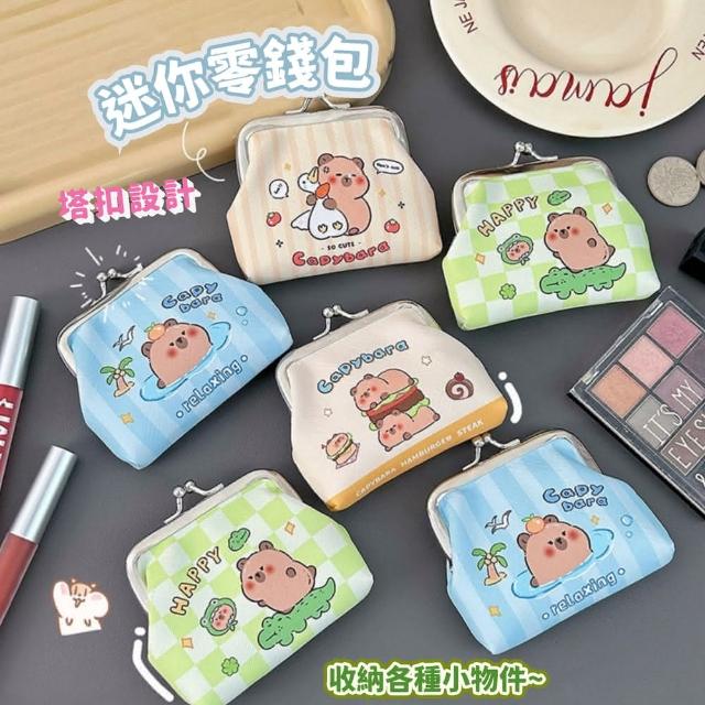 水豚零錢包 卡皮巴拉(零錢包 水豚 PU防水 零錢袋 卡通 迷你 耳機包 收納包 便攜鑰匙包 小零錢包 隨身小物收納包 塔扣)