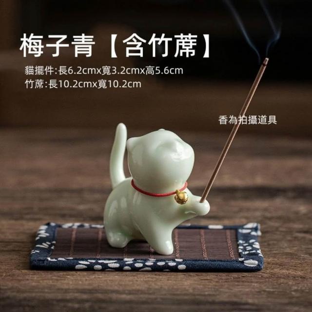 故宮貓香插│線香 線香座 貓陶瓷線香座 線香盤 臥香座 薰香座 香皿 插香座 香臺 香插 線香插 香道 桌上裝飾