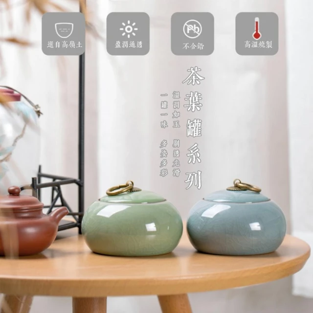 哥窯茶葉罐|天地方圓青瓷茶葉罐 陶瓷哥窯 儲存罐 茶罐普洱密封罐 茶倉 茶道 茶具配件 日式茶葉罐 茶甕 裝茶葉 密封罐