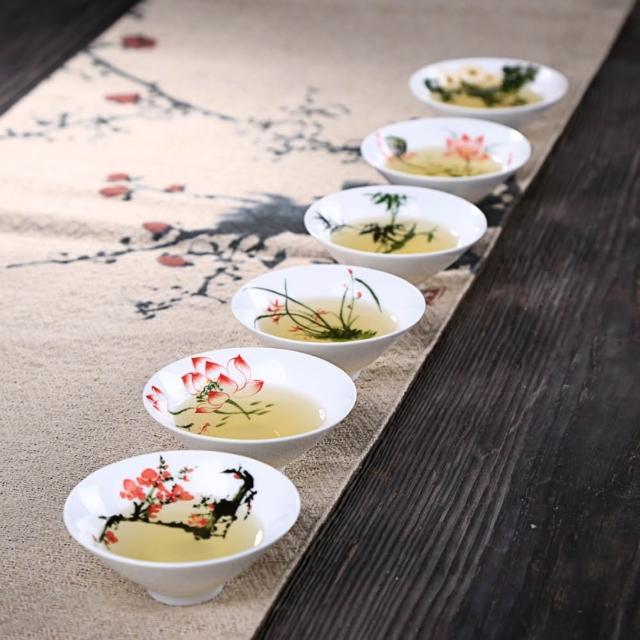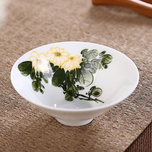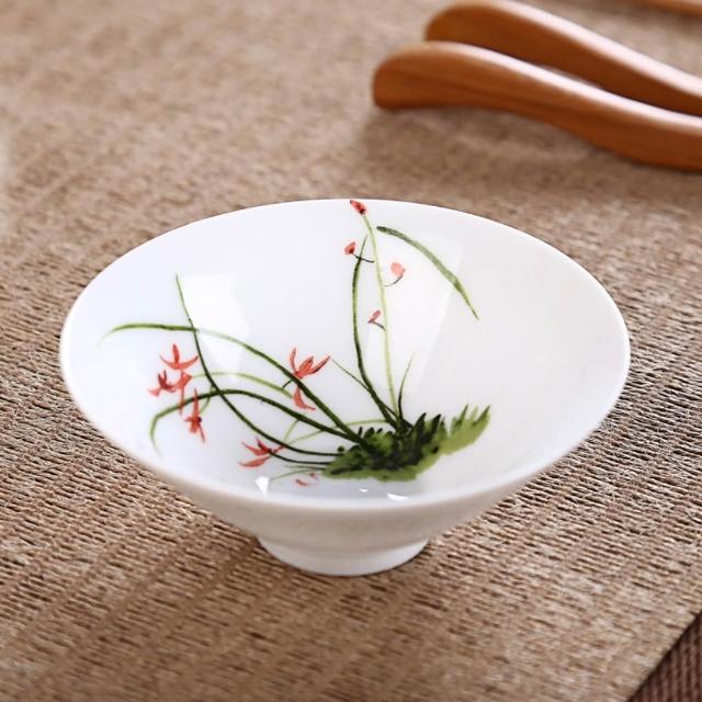 斗笠杯|陶瓷斗笠杯仿手繪高白瓷茶杯 薄胎青花茶杯 品茗杯 梅蘭竹菊 茶杯 小茶杯 茶道配件 茶道