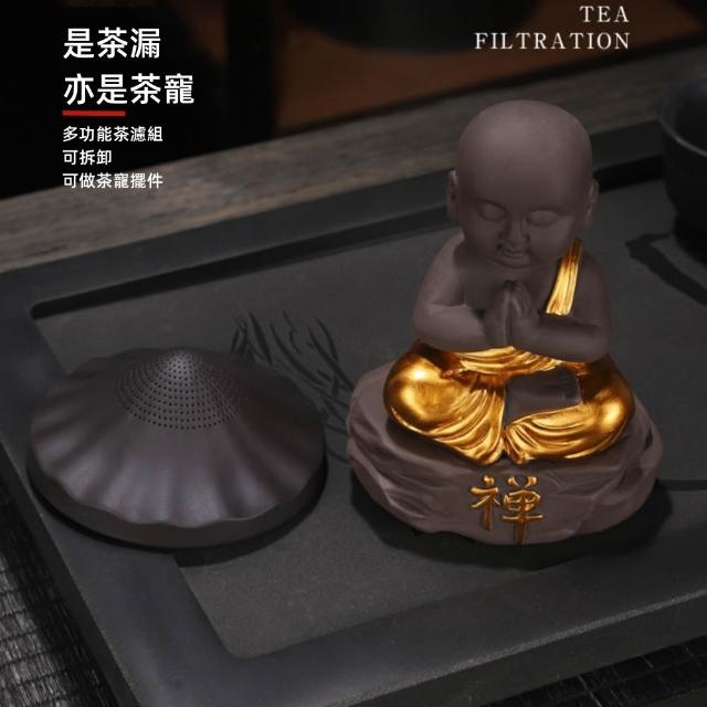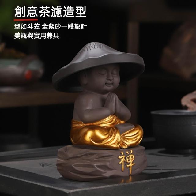 和尚紫砂茶漏|創意紫砂茶漏茶寵 全陶瓷一件式過濾網茶濾 茶具配件小和尚禪意擺件 茶寵 茶道 茶隔 茶器配件 茶寵 濾茶 過濾