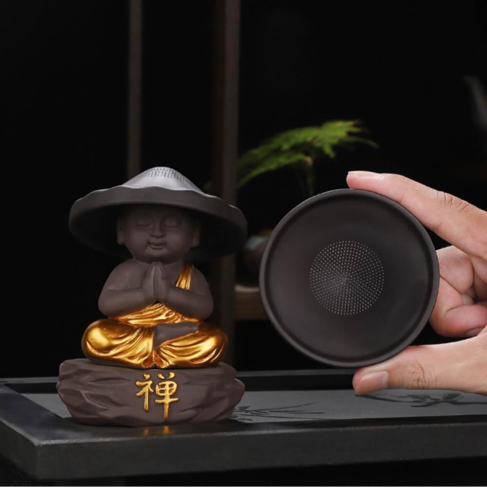 和尚紫砂茶漏|創意紫砂茶漏茶寵 全陶瓷一件式過濾網茶濾 茶具配件小和尚禪意擺件 茶寵 茶道 茶隔 茶器配件 茶寵 濾茶 過濾