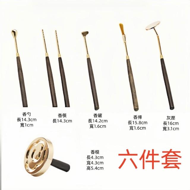 香篆配件六件套|香道配件 香勺 香掃 香模 香道工具 香道入門套裝 香印用品 香篆 熏香 打拓 焚香工具 香道套裝