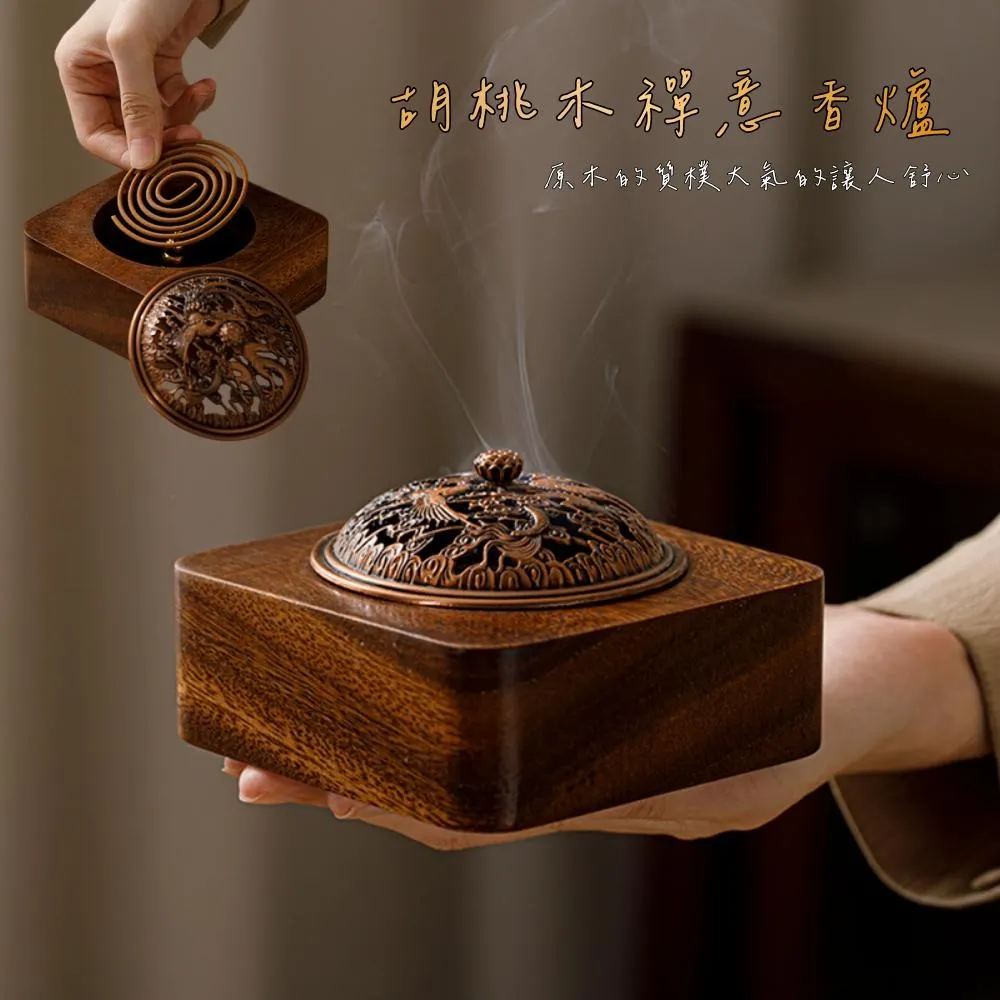 胡桃木龍鳳香爐|胡桃木中式香爐 香爐 淨香爐 盤香爐 塔香爐 家用香爐 薰香爐 香薰爐 盤香座 線香爐 龍鳳香爐