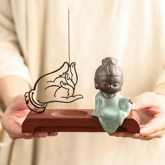 創意佛手香插|線香插 插香座 香道配件 靜心香插 香夾 線香爐 立香座 創意線香座 室內香薰爐 禪意 小和尚