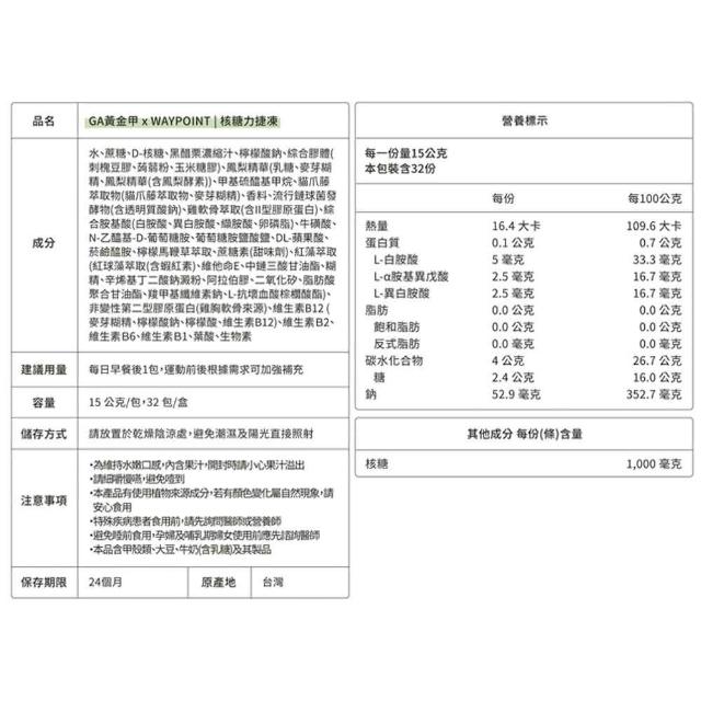 GA黃金甲 核糖力捷凍 1盒32包 (3%mo幣回饋 能量果凍 能量果膠 能量棒 運動 三鐵 慢跑 爬山 選品生活屋)