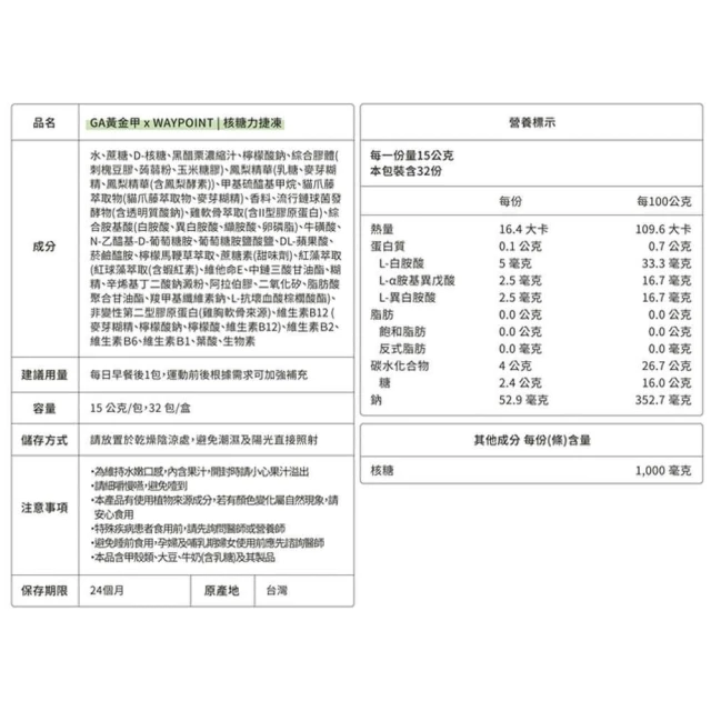 GA黃金甲 核糖力捷凍 1包 (3%mo幣回饋 能量果凍 能量果膠 能量棒 運動 三鐵 慢跑 爬山 選品生活屋)