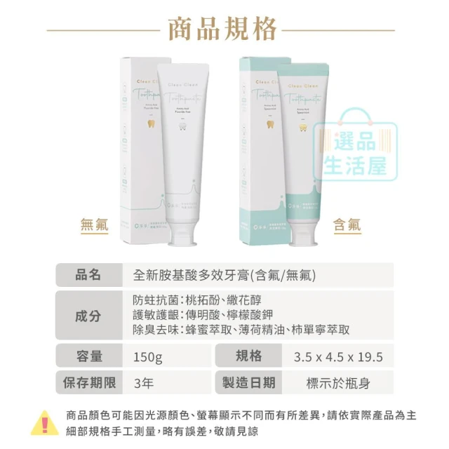 淨淨全新胺基酸成人牙膏150g(含氟) (3%mo幣回饋) 含氟牙膏 薄荷牙膏 多效牙膏 牙膏 clean clean 笙闆 選品生活屋