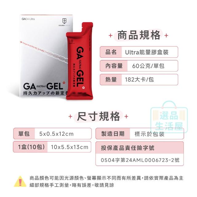 GA黃金甲 ULTRA能量膠 1盒10包 (3%mo幣回饋 能量果凍 能量果膠 能量棒 運動 三鐵 慢跑 爬山 選品生活